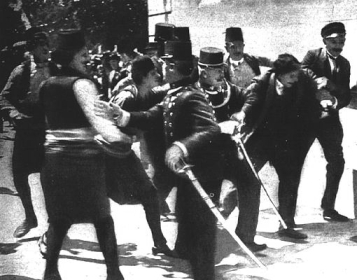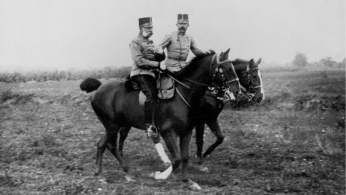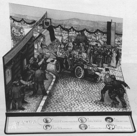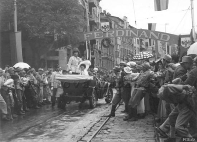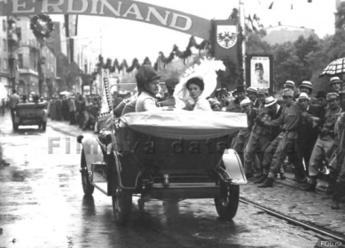 Prasynovci a praneteře Františka a Václava Veverkových (zleva) Václav, Františka, Dominik, Milouš, František a Václavka asistují dne 28. června 1914 při přípravě korunovačních klenotů pro korunovaci arcivévody Františka Ferdinada d'Este českým králem, která měla proběhnout v pravé poledne následujícího dne. Ke korunovaci však již bohužel nedošlo, protože arcivévoda byl ve stejný den v Sarajevu zavražděn atentnátníkem Gavrillo Principem. (28. 6. 1914)