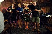 Vokální historický King Henry's Madrigal, který pro Jethro Tull napsal již počátkem 16. století anglický král Henry VIII, naleznete v podání příležitostného uskupení "Kočky sestřenice Jezinkovy a Zdeněk" zde: youtube nebo více: mp3. Oblíbená blues vynálezce secího stroje sira Jethro Tulla Stormy Monday Blues a We're Gonna Boogie v podání bluesmana Martina Chika Oblíbené skladby sira Pink Floyda (který v Anglii také něco vynalezl, ale bohužel se již zapomnělo co přesně) Shine On You Crazy Diamond a Learn To Fly v podání Pink Floyd revivalu IT Crowd naleznete zde: youtube nebo mp3. A některé další nahrávky z tohoto večera, tzn. jak naší normální současné sestavy, tak i sestavy z let 2004 - 2007, která se u příležitosti desátých narozenin Bratranců Veverkových zcela vyjímečně tento večer sešla na pódiu Kainu, naleznete na našem youtube kanálu, tak se tam jím trochu prohrabte a tato videa si tam dohledejte. ; - ) |