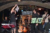V Kainu jsme tehdy slavili naše desáté narozeniny a pogratulovat nám tam kromě s námi příbuzensky spřízněné kapely Pink Floyd revival IT Crowd přišli i dvě Kočky, Jezinka a Zdeněk (kteří měli zrovna ten večer džetří pré a které jsme pracovně a posléze i definitivně nazvali Kočky sestřenice Jezinkovy a Zdeněk) a bluesman Martin Chik. A dorazili i všichni ti členové z úplně první sestavy, kteří s námi již nehrají, takže jsme zahráli i blok ŠESTI písniček v sestavě, v jaké jsme odehráli (téměř, až na ŠEST dní) přesně před deseti lety náš úplně první koncert. |